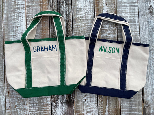 Custom Embroidered, Personalized, Monogrammed SMALL Canvas Boat Tote