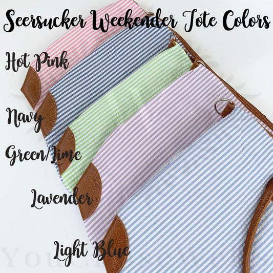 Monogrammed Striped Seersucker Weekender, Tote Bag, Travel, Duffel Bag, Personalized Graduation Gift, Bridesmaid Tote Bag, Custom Diaper Bag