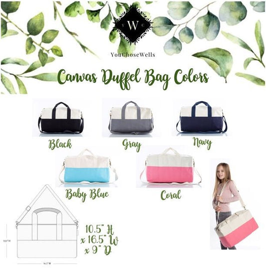 Custom Embroidered, Personalized, Monogrammed Canvas Duffle Bag