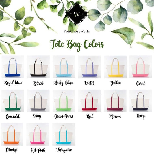Custom Embroidered, Personalized, Monogrammed LARGE Canvas Boat Tote