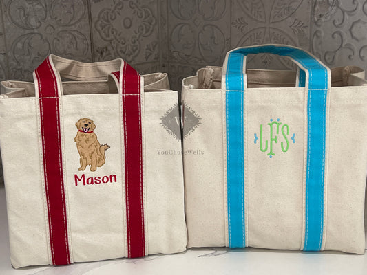 Custom Embroidered, Personalized, Monogrammed SMALL Canvas Boat Tote