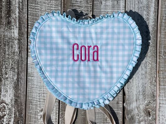 Custom Embroidered, Personalized, Monogrammed Ruffle Heart Backpack