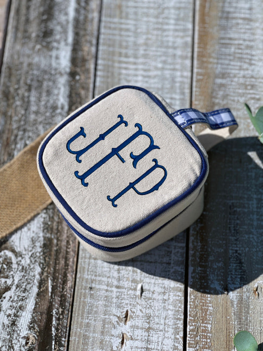Monogrammed Canvas Gingham Jewelry Case, Personalized Jewelry Cube, Custom Jewelry Holder, Travel Jewelry Case, Gingham Jewelry Cube Case