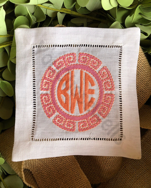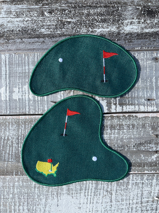 Custom Embroidered, Personalized, Monogrammed Golf Green Coaster and Cocktail Napkin