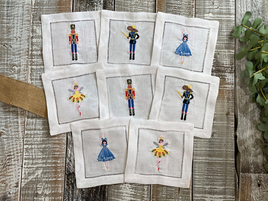 Nutcracker Christmas Holiday Cocktail Napkin Set, Personalized Linen Cocktail Napkin, Mouse King, Clara, Nutcracker, Sugar Plum Fairy Custom
