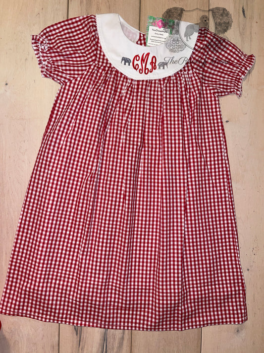 Girl, Monogrammed Alabama Dress, Bishop Dress, University of Alabama Dress, Alabama Girl, Game Day Outfit, Roll Tide, Red Gingham Dress