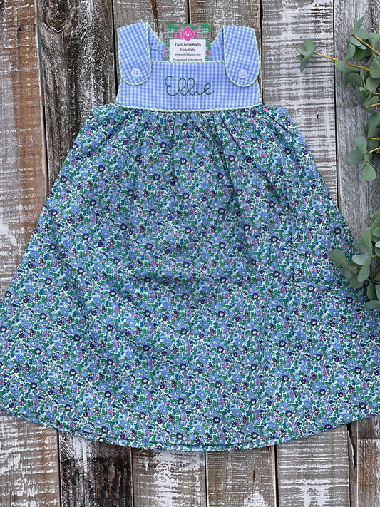 Girl, Boy, Monogrammed Floral Dress and Gingham Bubble, Sibling Sets, Matching Dress & Bubble, Baby, Custom, Embroidered, Personalized