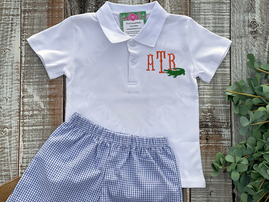 Monogrammed Boy Gator Polo Shirt & Short Set, Florida Gator Inspired, Gator Polo Shirt, Game Day Outfit, Personalized, Custom