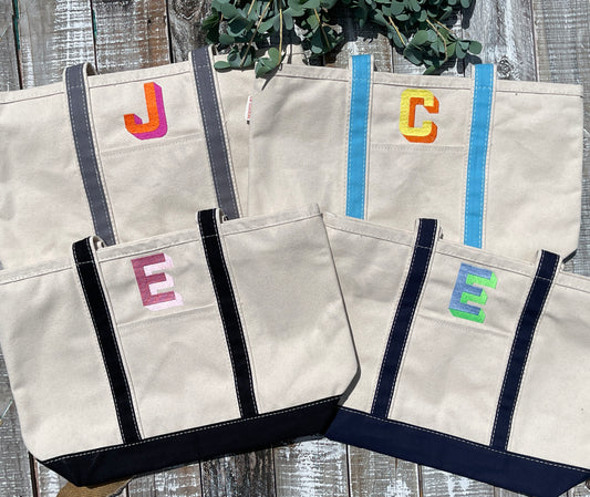 Custom Embroidered, Personalized, Monogrammed LARGE Canvas Boat Tote