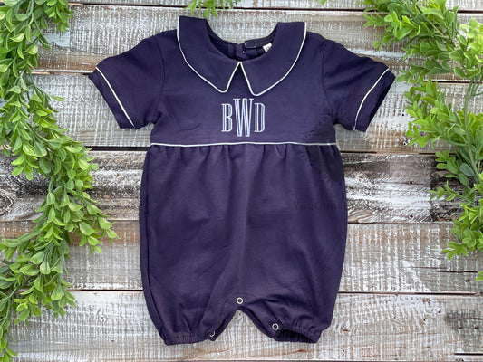 Monogrammed Baby Boy Navy, Blue, Monogrammed Jon Jon, Preppy, Embroidered, Personalize Baby Shower Gift, Baby Gift, Baby Boy Shortall