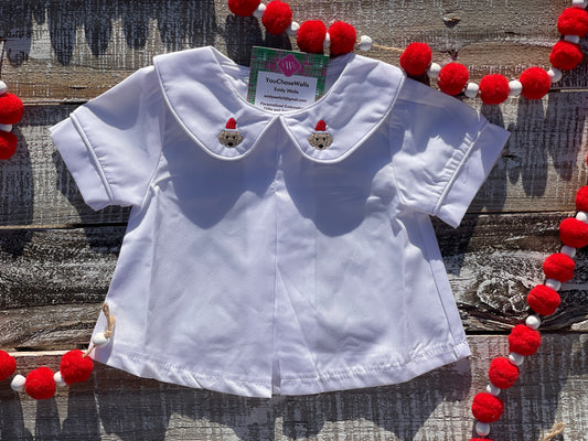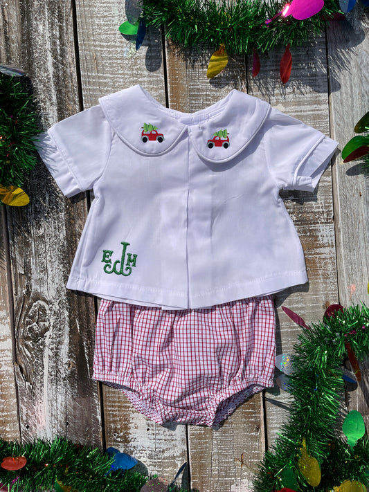 Custom Embroidered, Monogrammed, Personalized Chest, Christmas Mini Pleated Peter Pan Collar Shirt and Diaper Cover Set