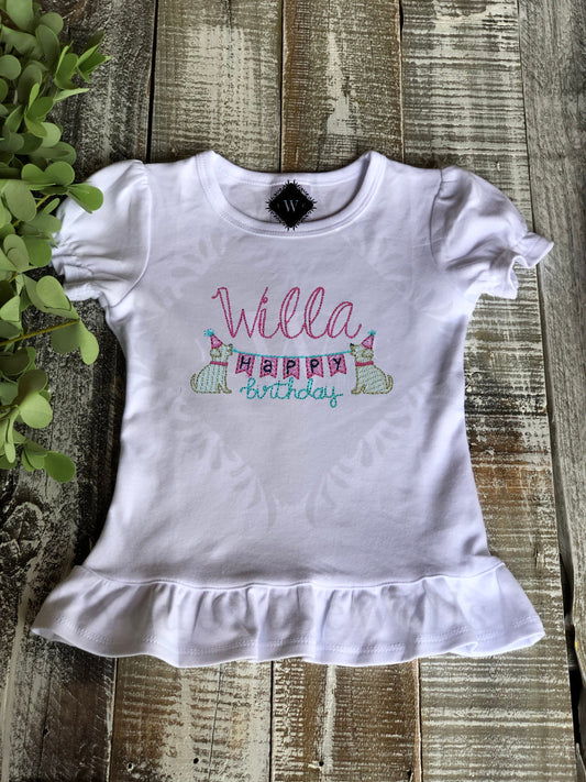 Personalized Girl Birthday Outfit, Custom Birthday Shirt and Ruffle Short Set, Birthday Puppy Frame Shirt, Baby Girl, Pink Gingham Short Set