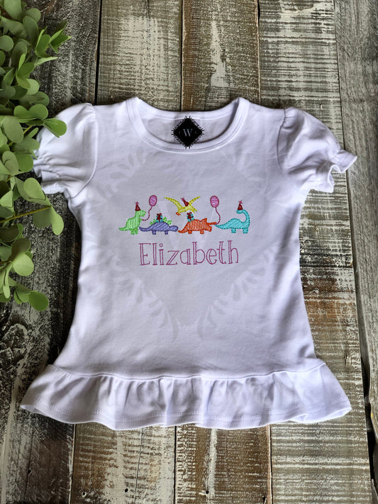 Personalized Girl Birthday Outfit, Custom Birthday Shirt and Ruffle Short Set, Birthday Dinosaur Shirt, Baby Girl, Pink Gingham Short Set