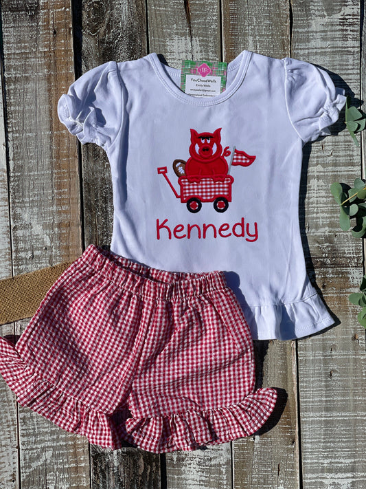 Custom Embroidered, Personalized Football Hog Applique Shirt and Short Set