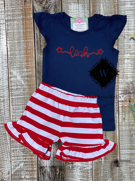 Custom, Embroidered, Girl, Boy Personalized Monogrammed Patriotic Shirt and Short Set, 4th of July Outfit, Little Girl, Little Boy