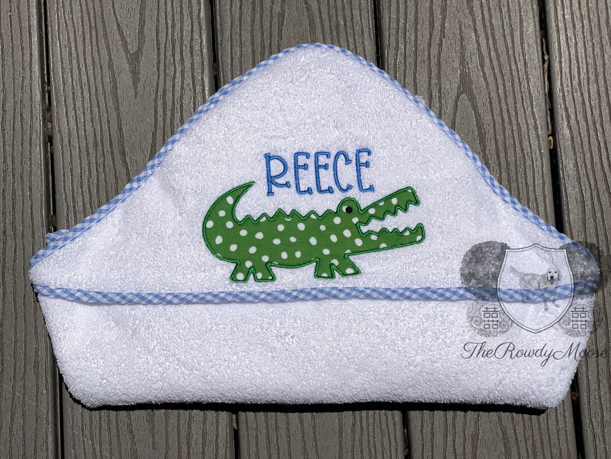 Baby Boy, Baby Girl Monogrammed Gingham Trim Hooded Towel, Custom, Personalized Bath Towel, Gingham Towel, Swim Towel, Baby Hooded Towel