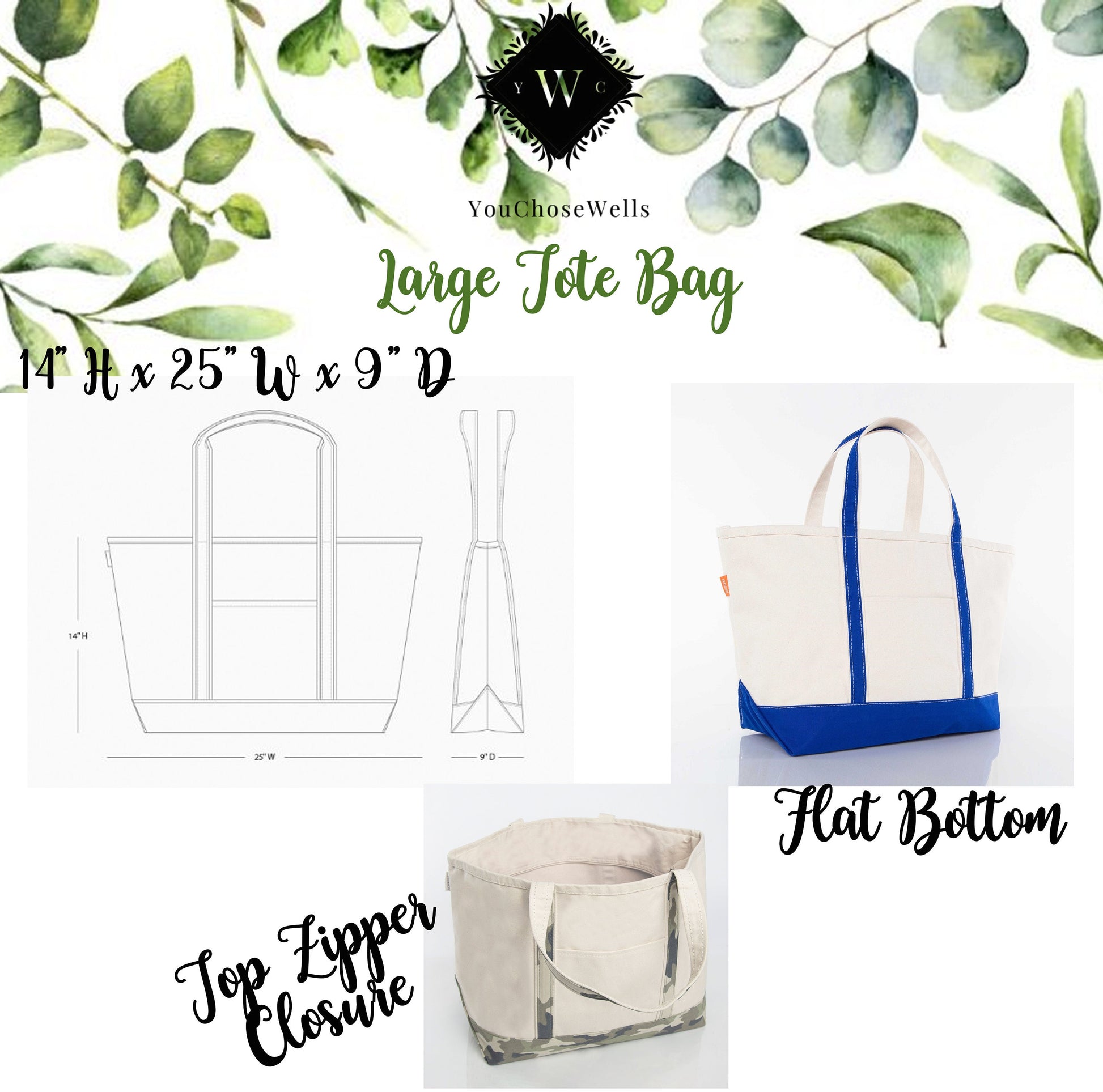 Travel in style with this perfect Large Canvas Boat Tote! Great bag for college students, girls trip, bridesmaid gift or expectant mom hospital bag. It is just the right size for air travel carry-on. Add a monogram, name, frame, and or design in your choice of color to personalize this tote bag! Choose from a variety of bag colors!