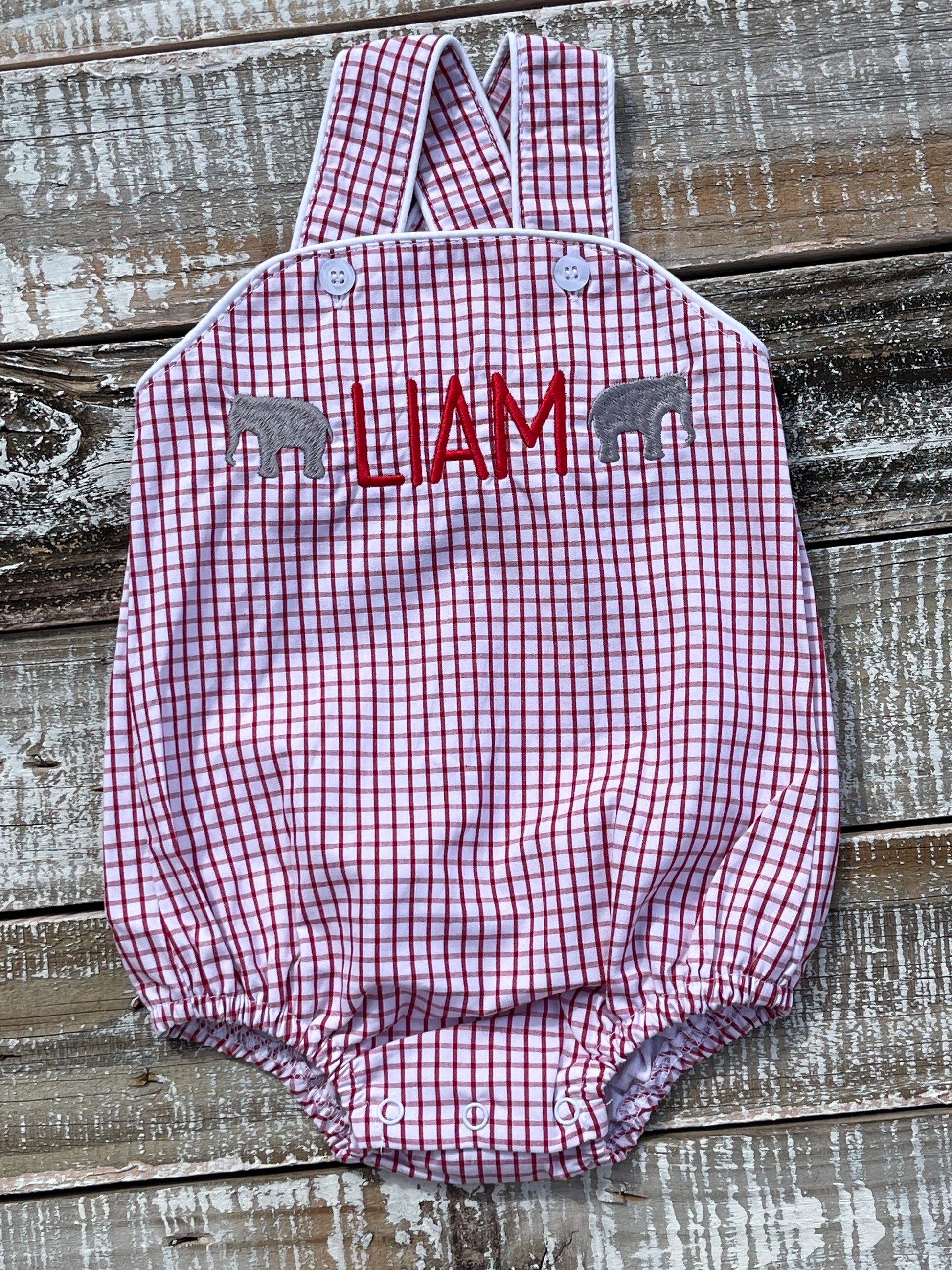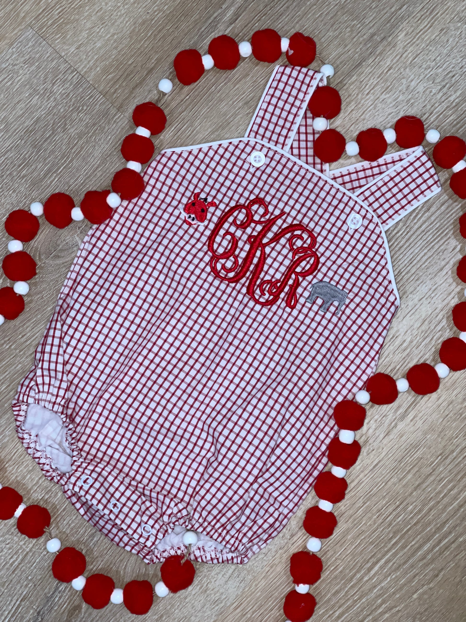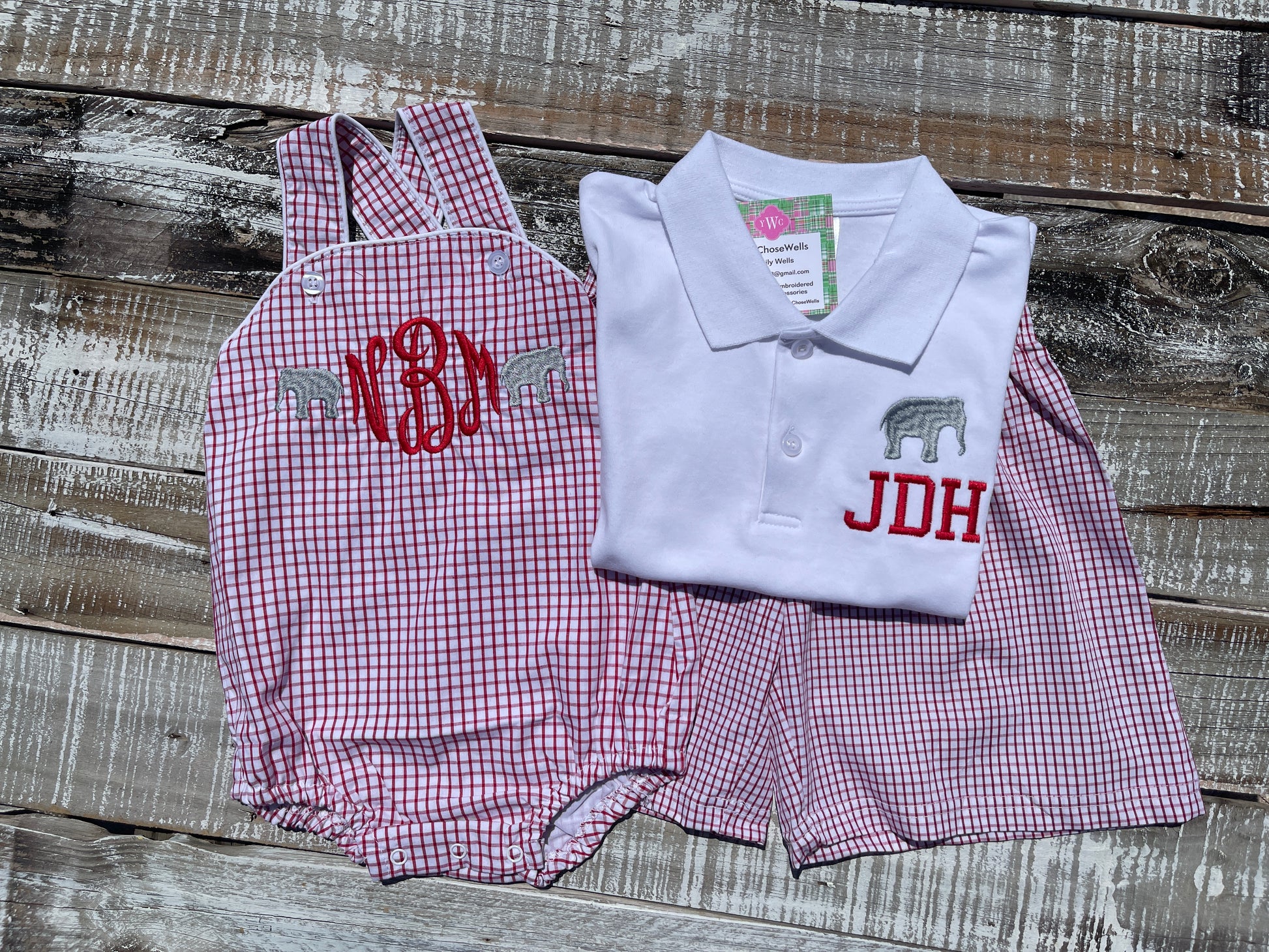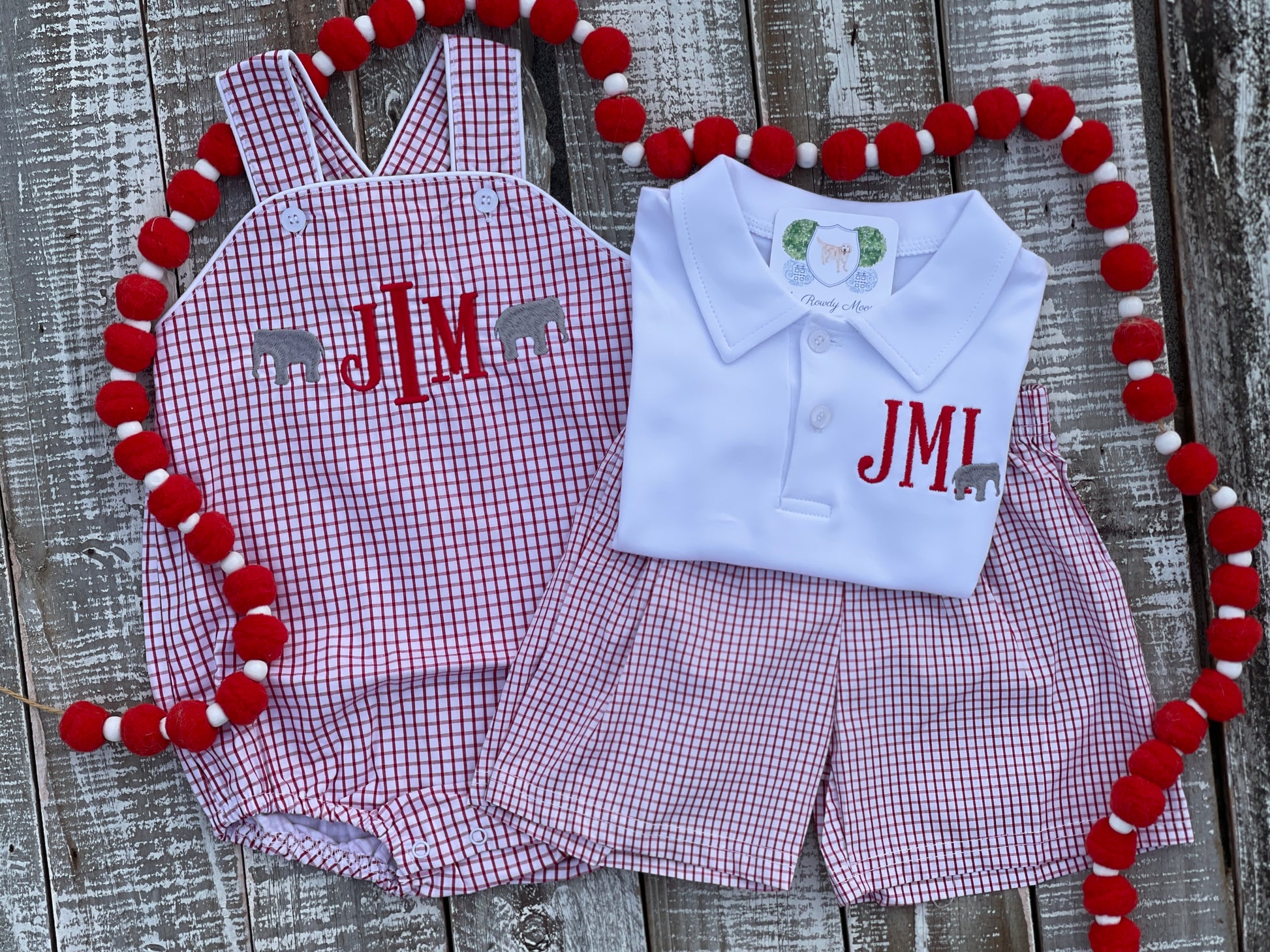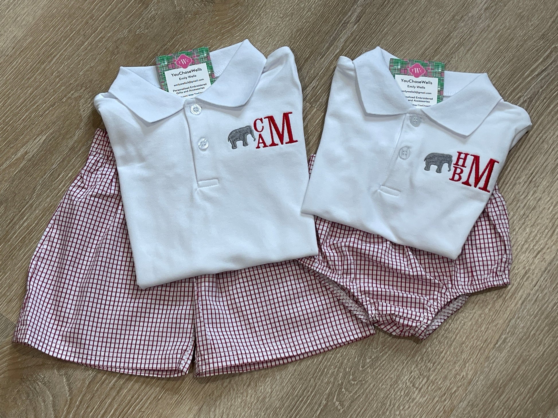 These adorable coordinating windowpane bubble and polo shirt, short or bloomer sets will be perfect for the littlest and biggest college fans to cheer on their favorite team!! Makes the best sibling outfits! Add a single letter or monogram to go with the Alabama mascot!