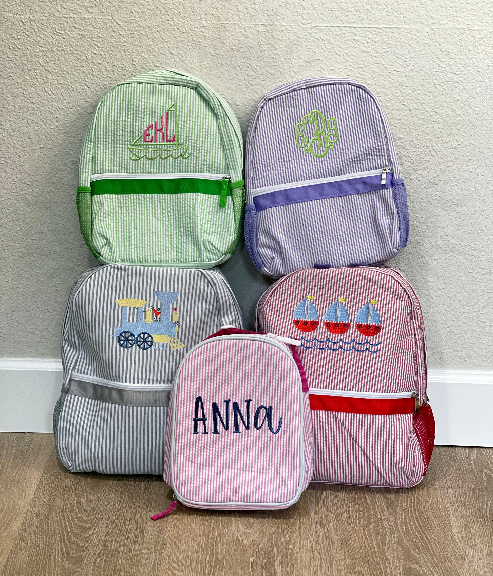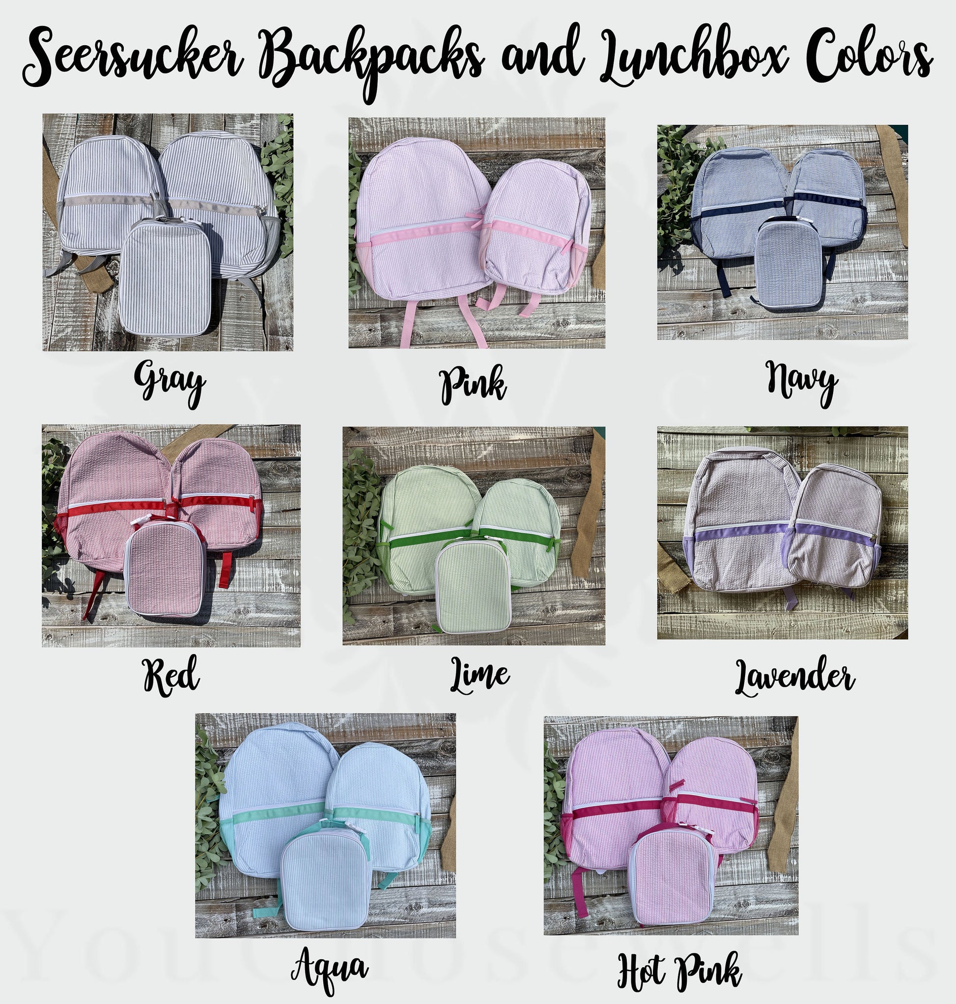 Custom Embroidered, Personalized, Monogrammed Seersucker Backpack & Lunchbox